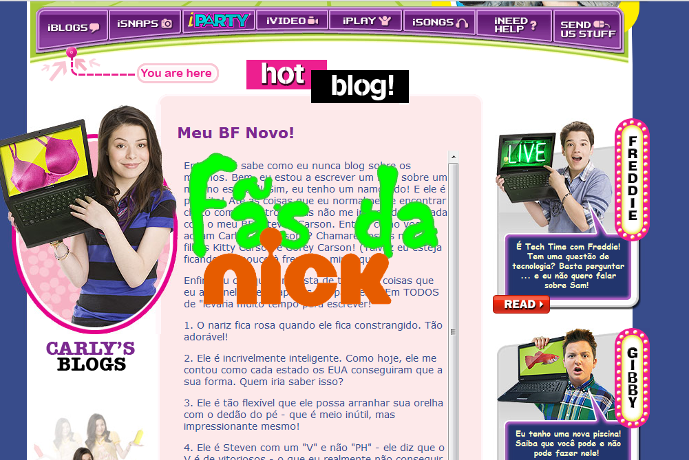 Então você sabe como eu nunca vi blog sobre os meninos. Bem, eu estou a escrever um blog sobre um menino especial! Sim, eu tenho um namorado! E ele é perfeito! Até as coisas que eu normalmente encontrar chato com os outros caras não me incomoda em nada com o meu BF, Steven Carson. Então, como vocês acham Carly Carson sons? Chamaremos os nossos filhos Kitty Carson e Corey Carson! (Talvez eu esteja ficando um pouco à frente de mim aqui.)